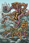 SCAR’s art is a surreal cocktail of macabre sexual imagery, mutated evolutions and dreamscapes, post retro sci-fi and bizarre abstractions, much of it blended with elements of intense and graphic horror. It is at once unique and challenging.